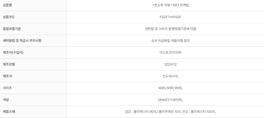 | 배송/교환/반품정보 |